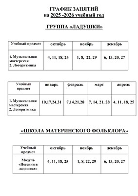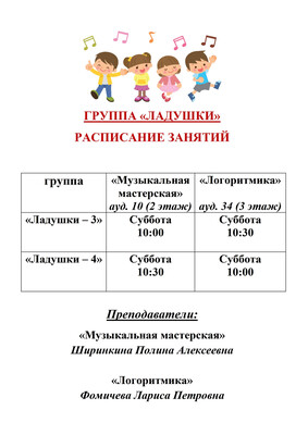 Информация для родителей групп "Ладушки"