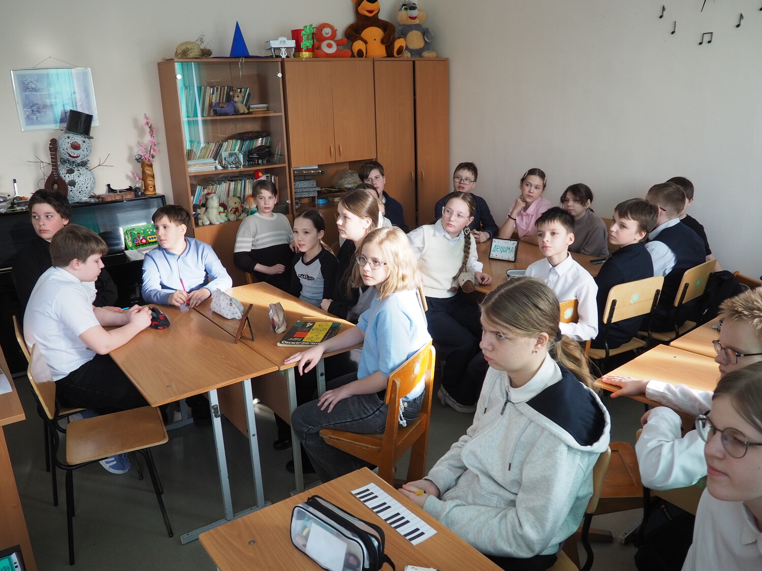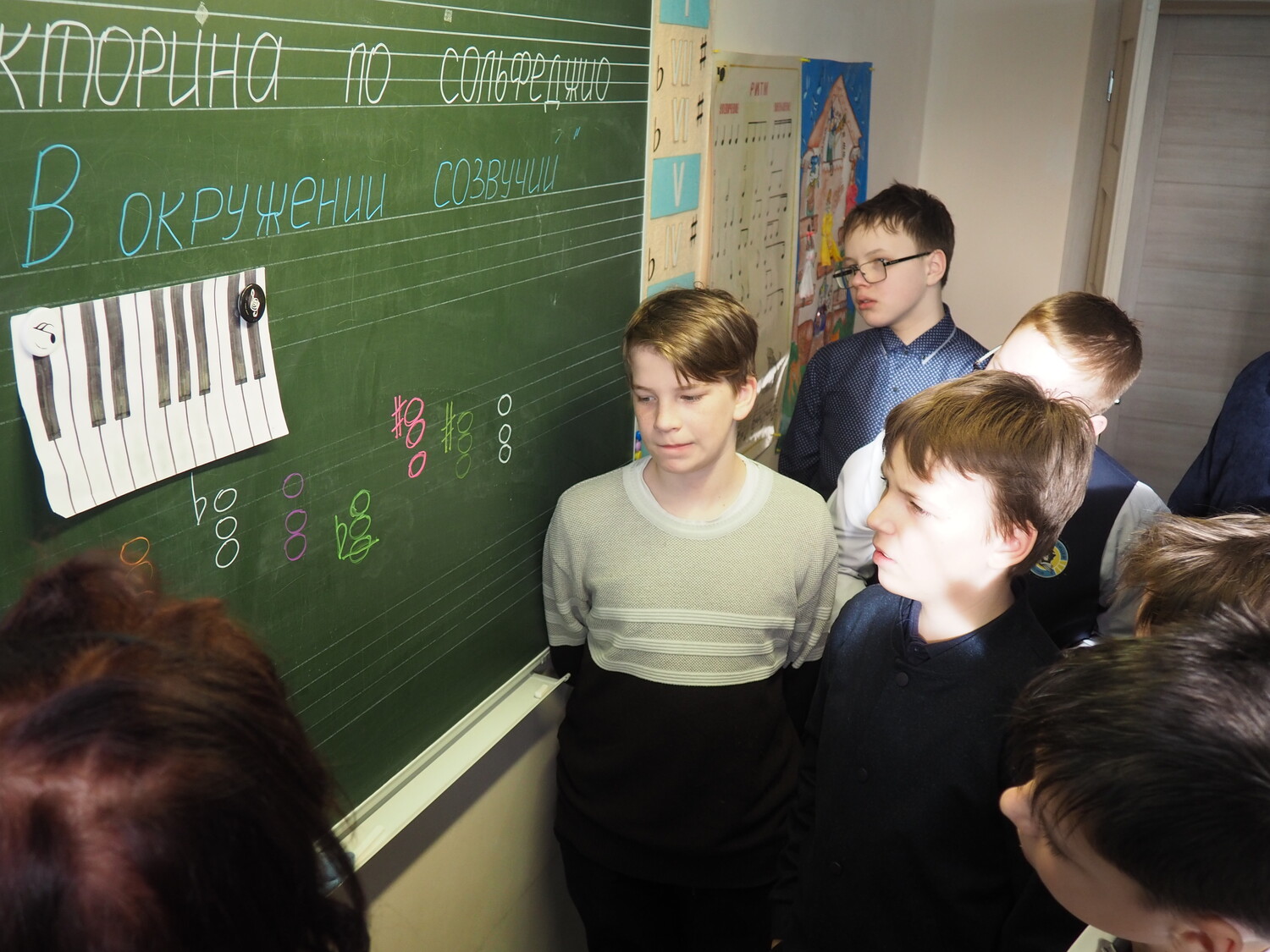 Ребятам были предложены различные задания, связанные с разделом сольфеджио- "Аккорды". Активно и увлеченно работали пятиклассники вместе с их наставниками: Никитиной В.П., Мишиной И.В. и Нефедовой М.М.