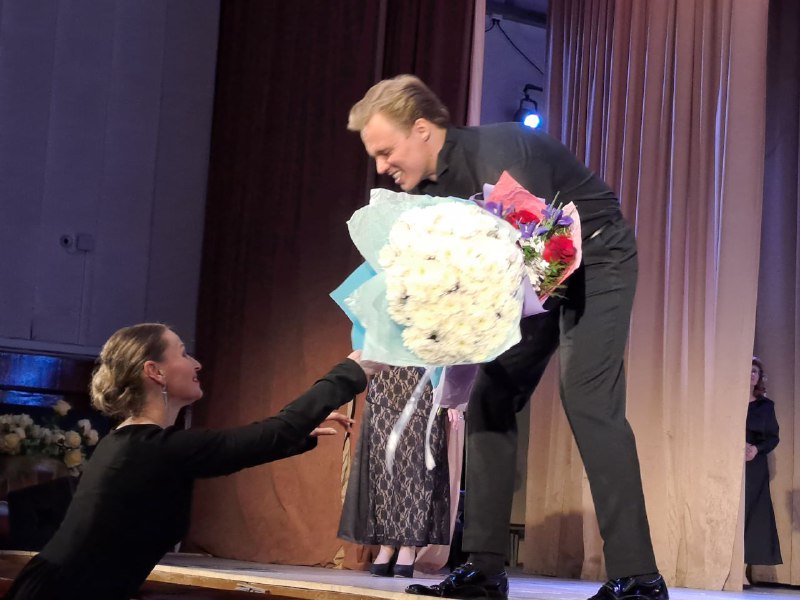 В своем плотном графике театральных постановок, контрактов с Российскими и зарубежными театрами, концертов, артист вместе с концертмейстером Михайловского театра Ириной Дайнеко нашел время для выступления в родном городе, в родной музыкальной школе.